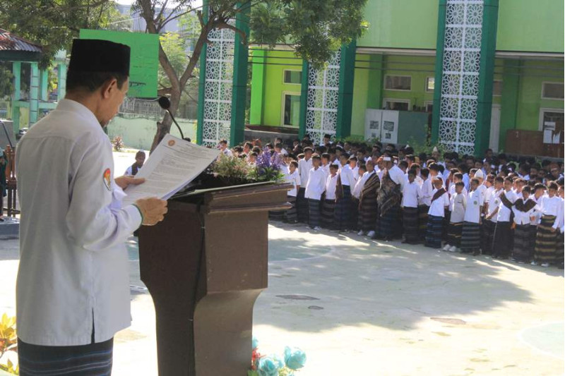 madrasah. Upacara penuh khidmat ini dipimpin langsung oleh Kepala MTsN 1 Ende, Bapak Samsudin Thalib, S.Pd.